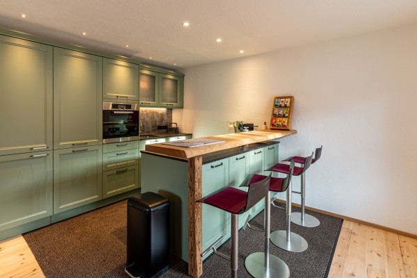 Eine moderne, offene Küche mit Kücheninsel und BAR – ideal für gesellige Kochabende