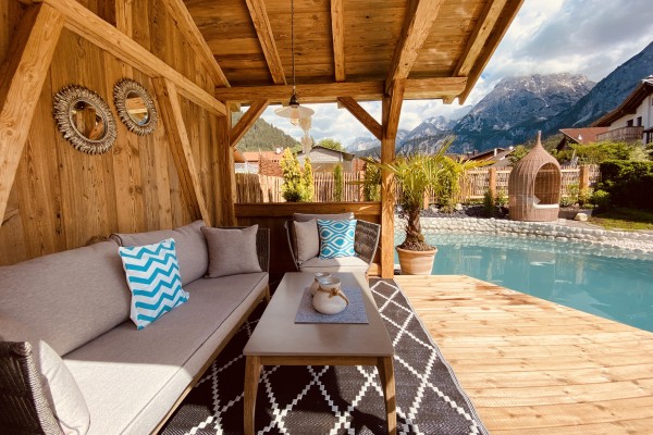 *im paradisisch angelegten Garten mit Whirlpool