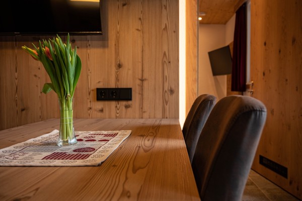 Lassen Sie Ihre Seele getrost auf der geräumigen Terrasse baumeln und genießen Sie dabei das herrliche Panorama auf unsere Bergwelt oder entspannen Sie in der privaten Sauna.